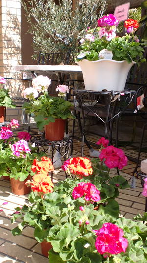テラコッタのやさしい質感と色合いで、お花が引き立ちます